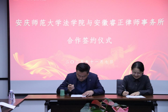 会议签订了《安庆师范大学接受社会捐赠协议书》《实践教学基地合作协议》《毕业生就业基地合作协议》,为5位受聘客座教授颁发聘书。睿正律所向安庆师范大学教育发展基金会捐赠人民币10万元,专项支持法学院建设发展。