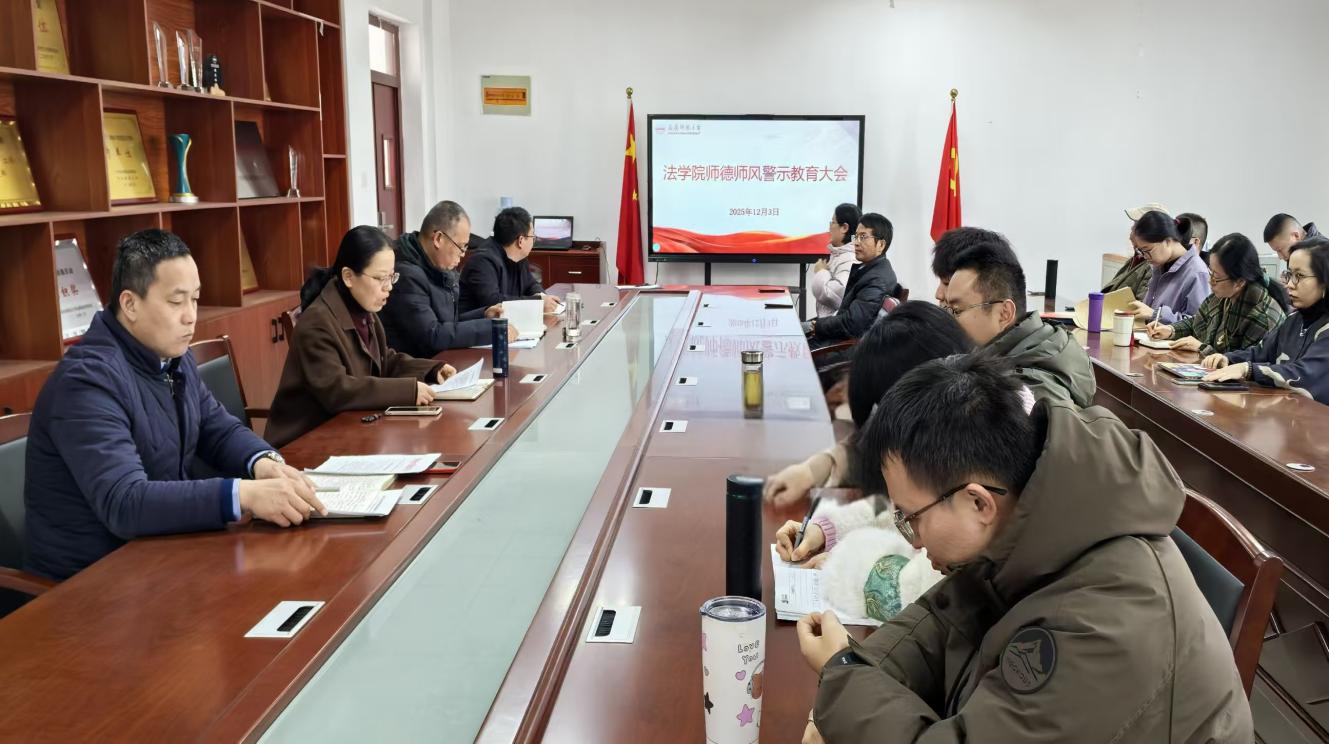本次师德师风警示教育大会进一步统一了法学院教职工的思想认识,强化了责任担当。法学院将持续推进师德师风建设常态化、长效化,以高尚师德铸魂育人,为学院教育教学高质量发展筑牢根基。(撰稿/摄影:彭佳欣 审核:钱敏)
