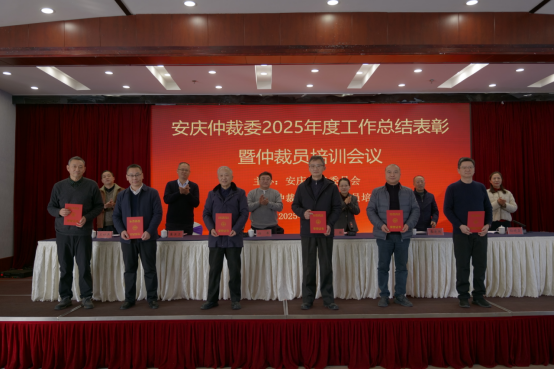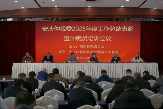12月27日,由安庆仲裁委员会主办、安庆仲裁委员会仲裁员培训基地承办的安庆仲裁委2025年度工作总结表彰暨仲裁员培训会议在安庆顺利举行。安庆仲裁委秘书处秘书长任军、安庆师范大学法学院党委书记钱敏、安庆师范大学法学院院长崔汪卫、安庆市律师协会会长崔爱国、安庆师范大学法学院党委副书记卫功兵、安庆仲裁委秘书处副秘书长孙晓霞出席会议。会议邀请广东金桥百信律师事务所仲裁法律事务部主任胡海雄律师、四川天府新区人民法院(四川自由贸易试验区人民法院)审判委员会专职委员王长军为全体仲裁员开展专业培训。安庆仲裁委第三届委员会全体仲裁员、安庆仲裁委员会秘书处全体工作人员及全市各律师事务所律师代表参加了本次会议。会议由钱敏主持。