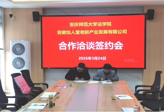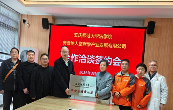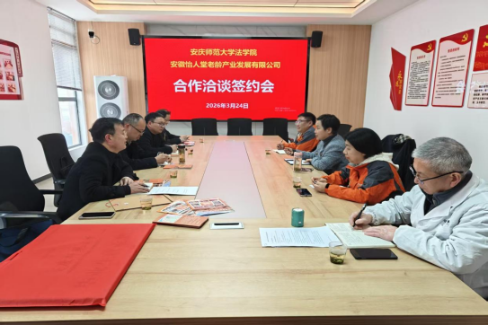 此次合作协议签订与微专业共建洽谈,是法学院主动对接地方产业发展需求、优化人才培养体系的重要实践。不仅为法学院社会工作等专业学生搭建了优质校外实践与就业平台,为智慧健康养老服务与管理微专业建设提供了坚实产业支撑,也将助力怡人堂充实专业人才储备、推动企业高质量发展。双方将以此次合作为新起点,持续深化校企协同,在人才联合培养、科研成果转化、社会服务落地等方面开展务实合作,携手为安庆市养老产业发展与基层社会治理现代化贡献校地协同力量。(撰稿/摄影:严春鹤 审核:崔汪卫 钱敏)