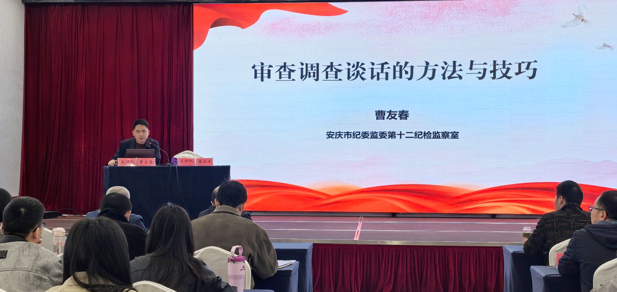 培训为期两天,课程设置紧密结合新时代纪检监察工作实际,围绕“纪法协同——职务违纪与违法犯罪的界限”“审查调查谈话的方法与技巧”“常见违纪违法行为定性”“大数据背景下的精细化初核”“提级监督何以有效治理农村‘微腐败’”等方面,邀请了苏州大学国家监察研究院院长、刑事法研究中心主任、王健法学院教授李晓明,安庆市纪委监委第八纪检监察室主任曹友春,安庆市纪委监委第六纪检监察室副主任王嵩,宿松县纪委常委、监委委员唐全龙,法学院讲师王光臣博士等专家学者开展系统授课培训。