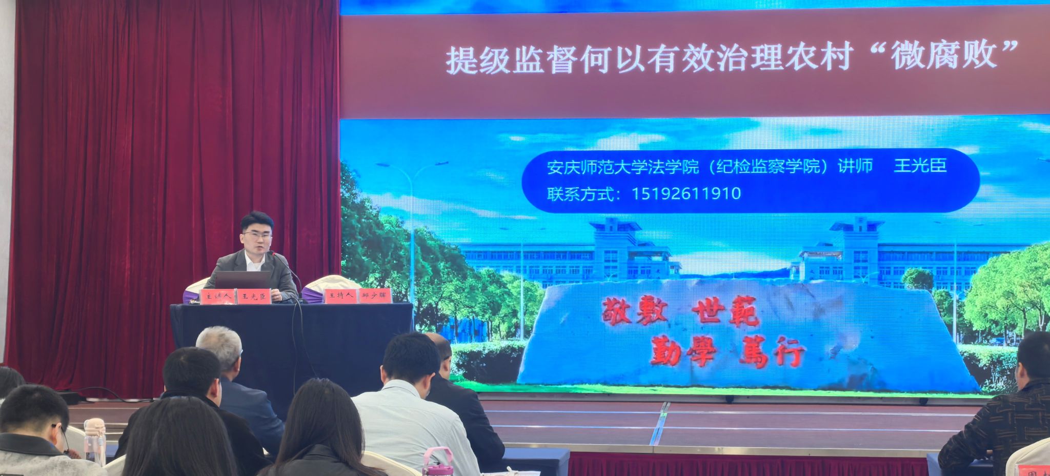 本次培训班由太湖县纪委监委主办、法学院承办,进一步推动了理论研究成果与地方纪检监察实务工作的深度融合,有效搭建了校地合作交流的桥梁,为法学院持续服务地方法治建设与廉政工作、助力基层纪检监察工作高质量发展奠定了坚实基础。(撰稿 :彭佳欣 摄影:任佰慧 彭佳欣 审核:钱敏)