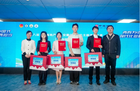 11月8日至9日,第八届“中海地产杯”安徽省大学生主题演讲比赛在安徽农业大学和中海地产海悦青创空间顺利落幕。法学院2025级社会工作专业朱欣延同学表现优异,荣获特等奖,学校获“优秀组织奖”。