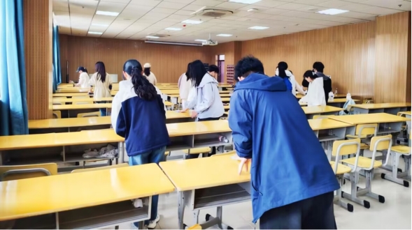 活动现场,同学们热情高涨、默契配合,对教室、走廊、读书角等公共区域进行全方位清扫整理。同学们不怕脏、不怕累,认真对待每一项清洁任务,从擦拭门窗、桌椅、宣传展板,到清理地面杂物、规整书籍资料,每一个环节都力争做到细致入微、一丝不苟。在同学们的共同努力下,楼内各公共区域变得干净明亮、井然有序,为学院师生营造了清新雅致、舒心宜人的学习环境。“洁净的校园环境,离不开每一个人遵守卫生规范、履行劳动责任。正如法律的公正权威,离不开全社会尊崇规则、恪守底线。” 2025级法学5班王玉珠同学谈到,“这次志愿清扫不仅擦亮了教学楼的整洁底色,更让我深刻感受到了知行合一的重要意义。”