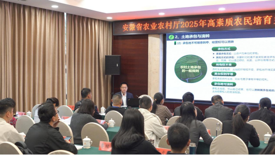 2025年11月2日上午,法学院副教授程丁卯应邀为“2025年全省乡风文明带头人研修班(第一期)”授课。此次研修班由安徽省农业农村厅举办,来自全省80余名乡风文明带头人参加培训。
